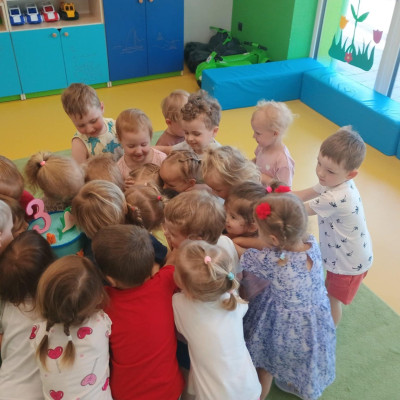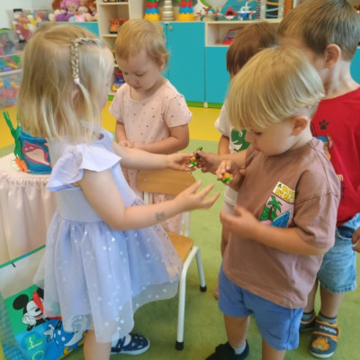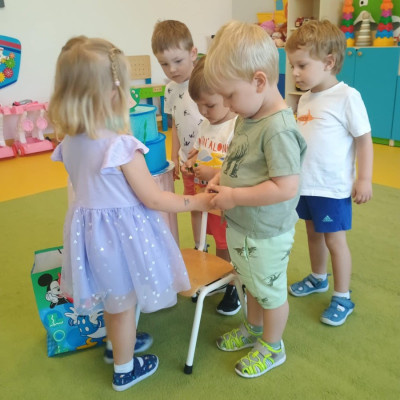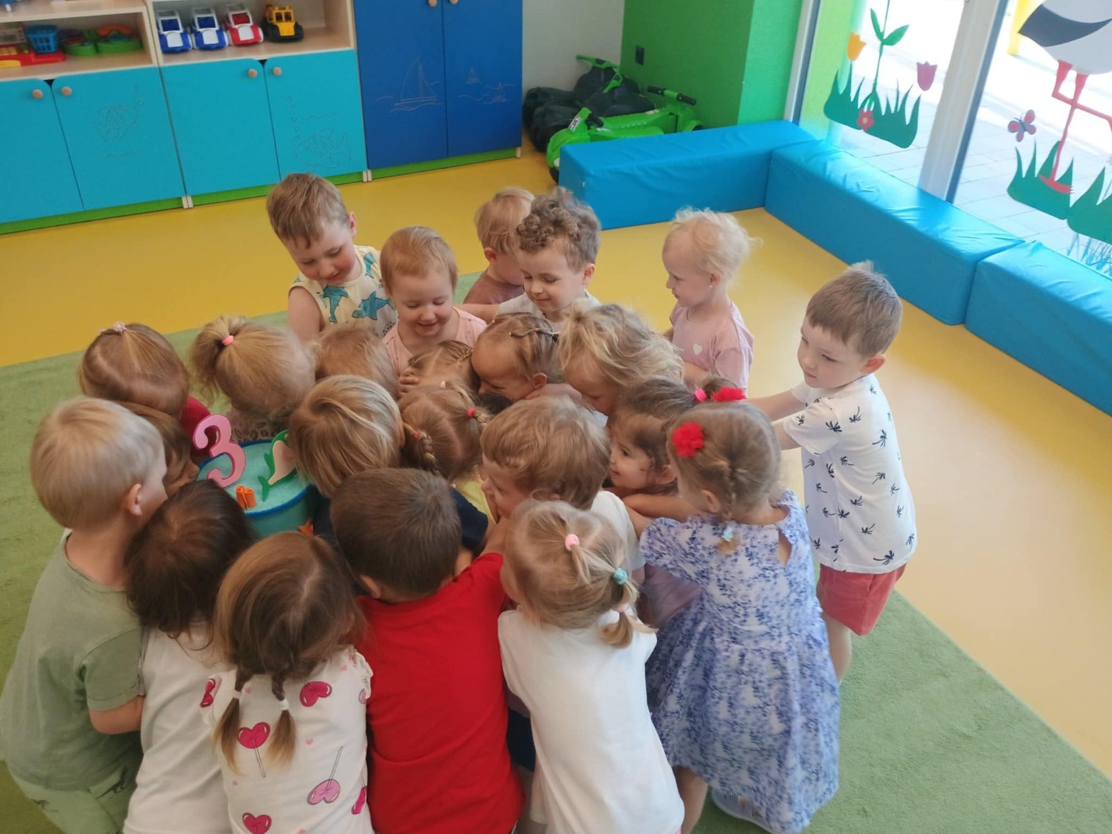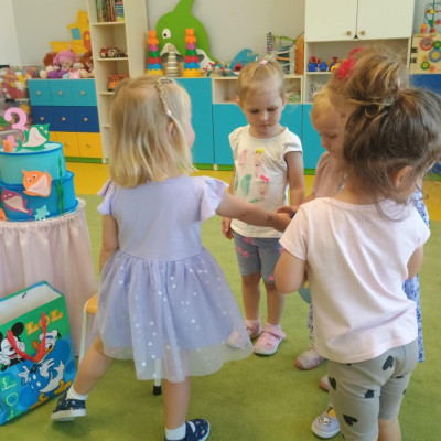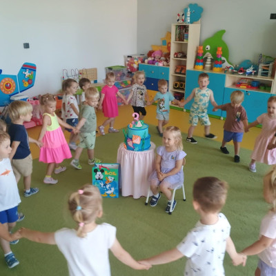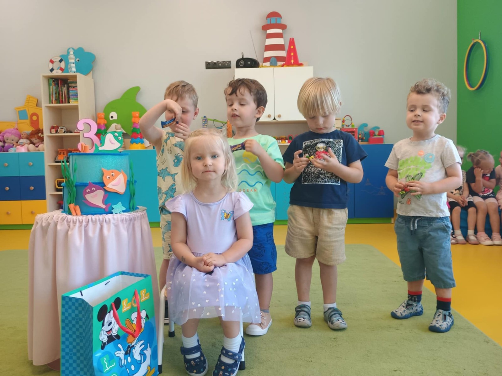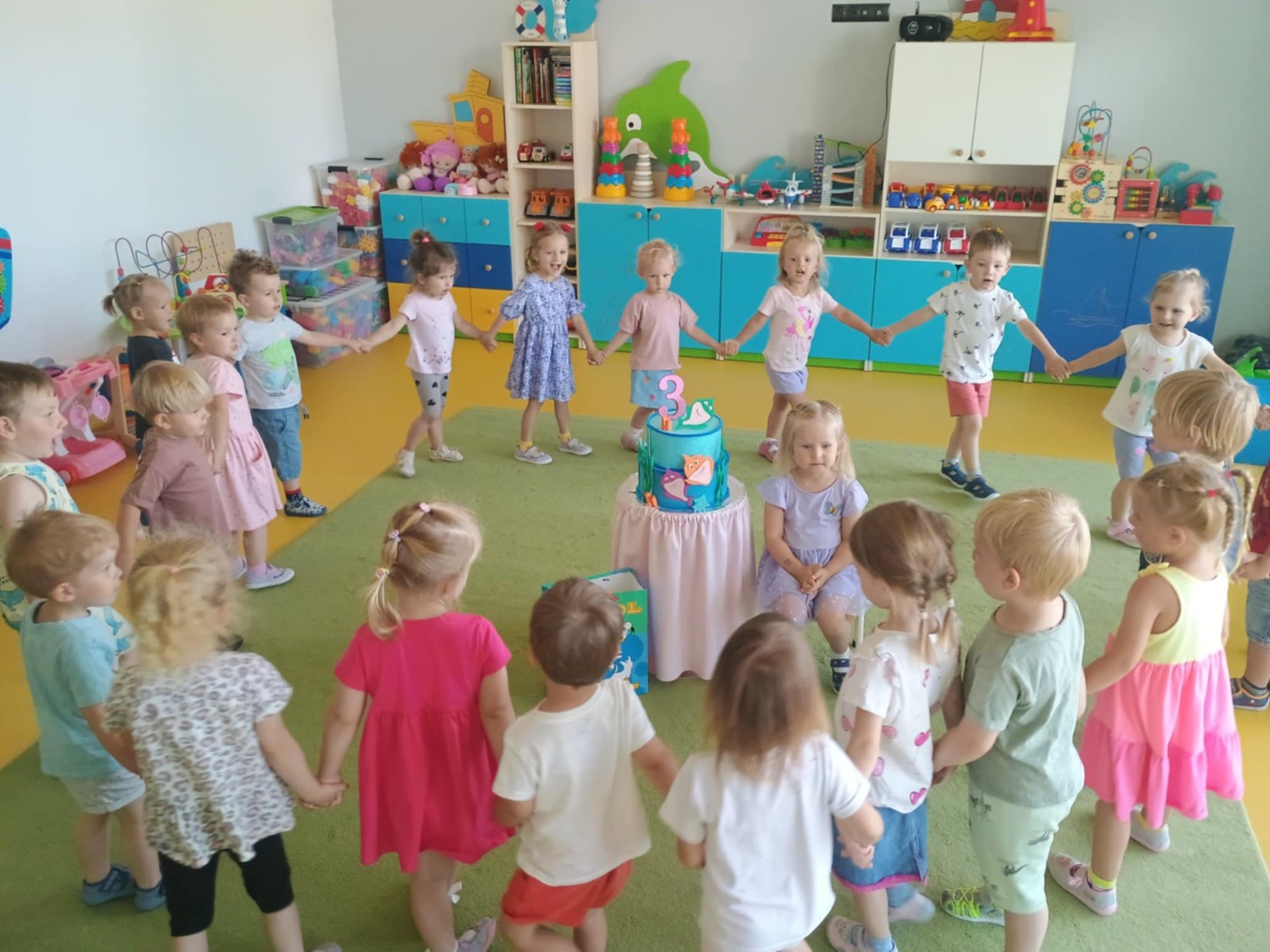 Zdjęcie przedstawia dzieci podczas zabawy urodzinowej