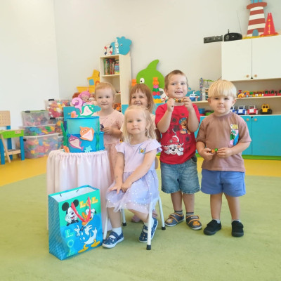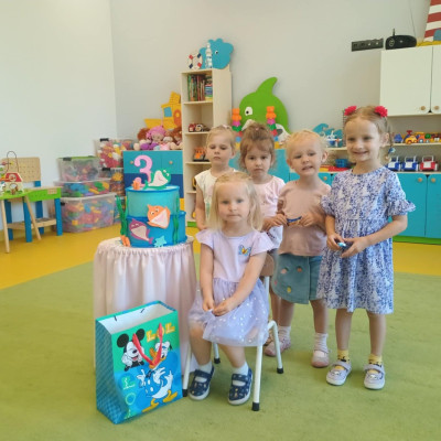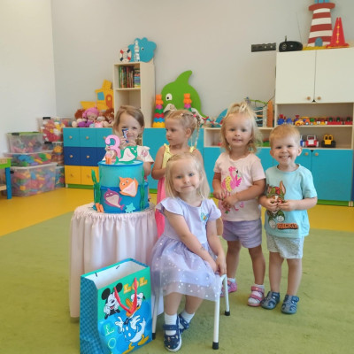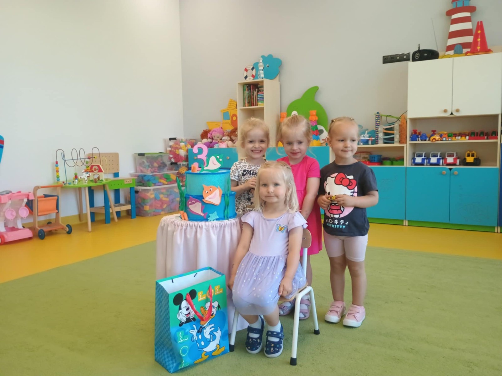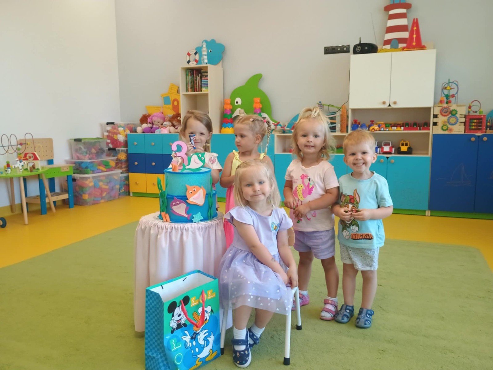 fZdjęcie przedstawia dzieci podczas zabawy urodzinowej
