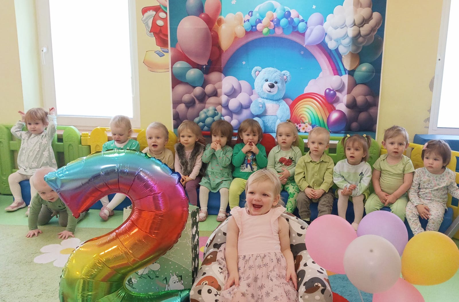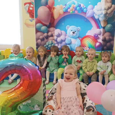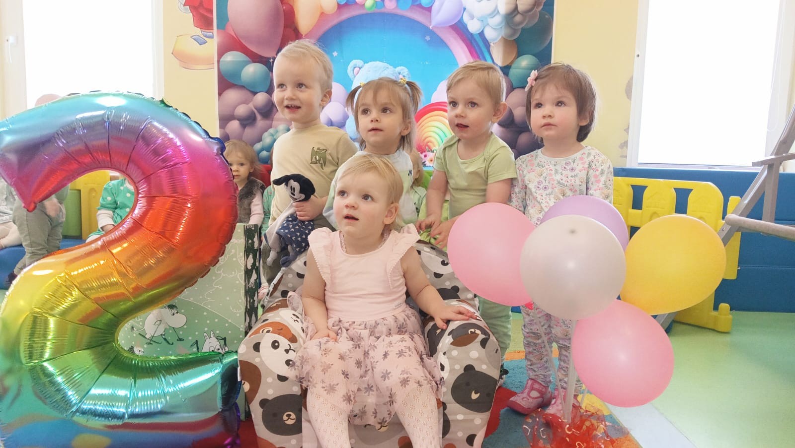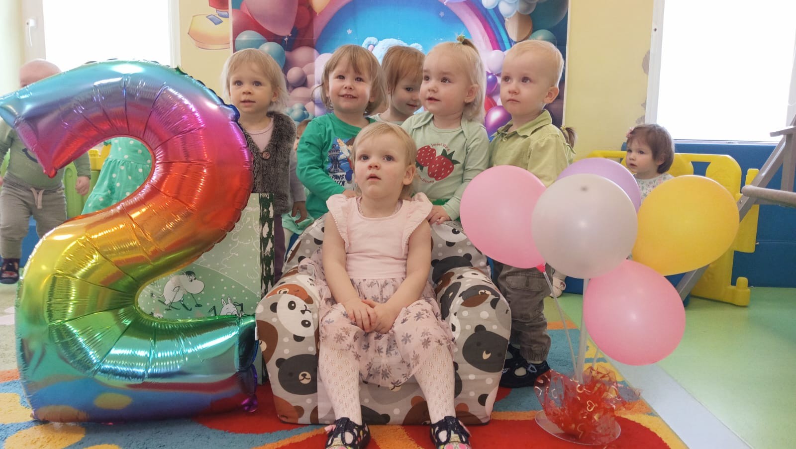 Zdjęcie przedstawia dzieci świętujące urodziny koleżanki z grupy