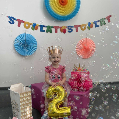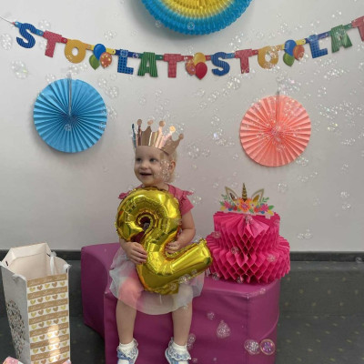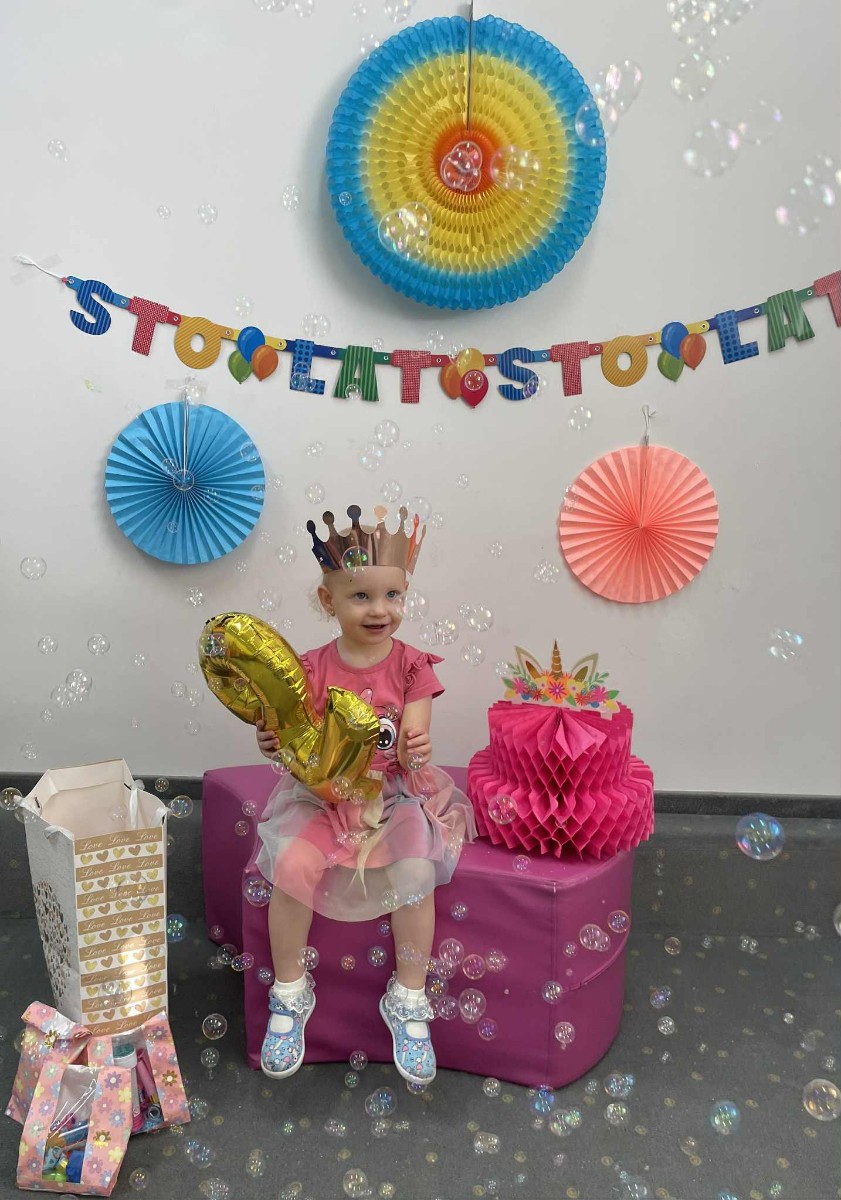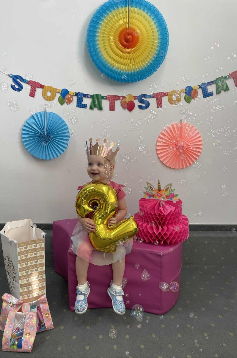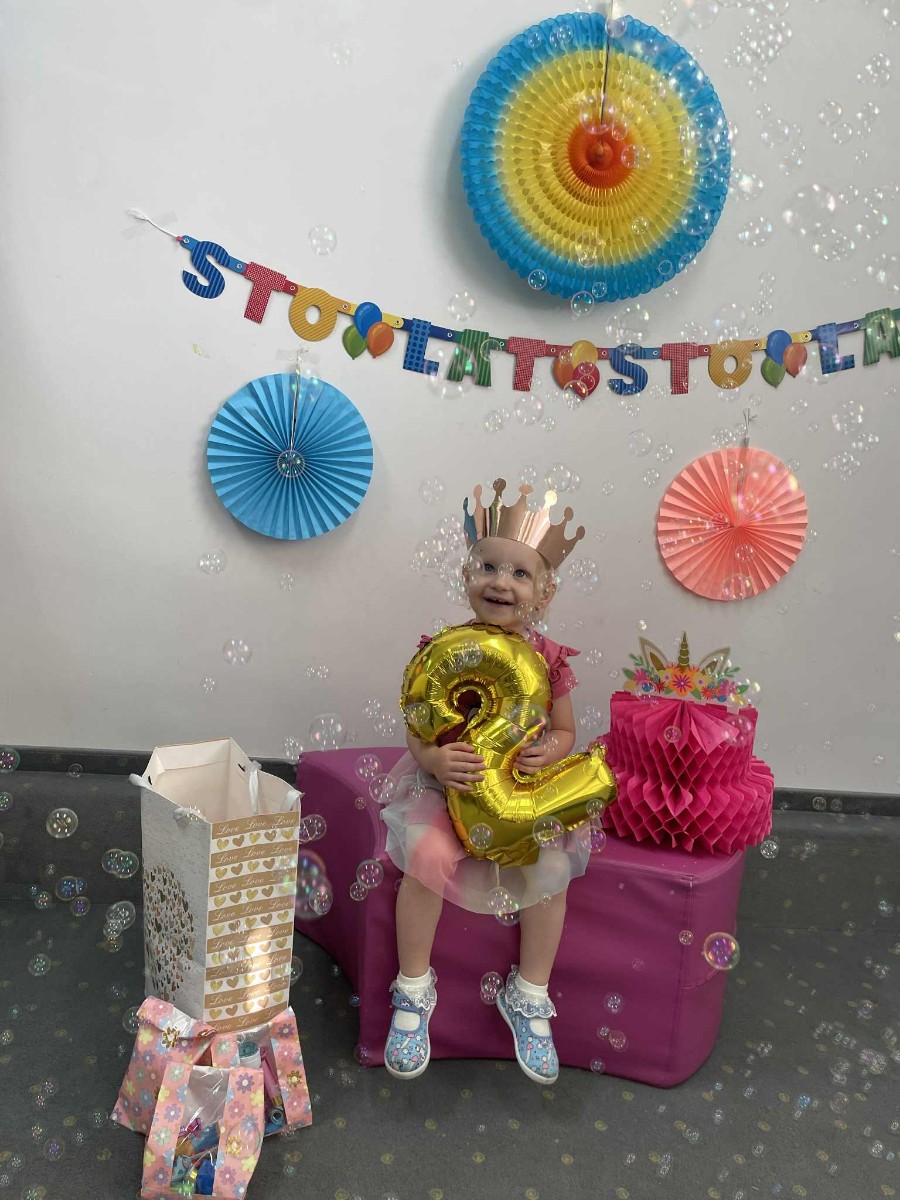 Zdjęcie przedstawia dzieci podczas zabawy urodzinowej