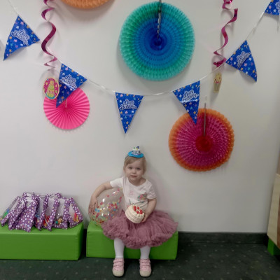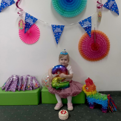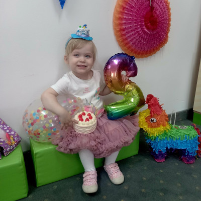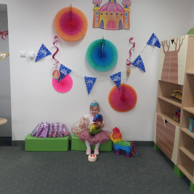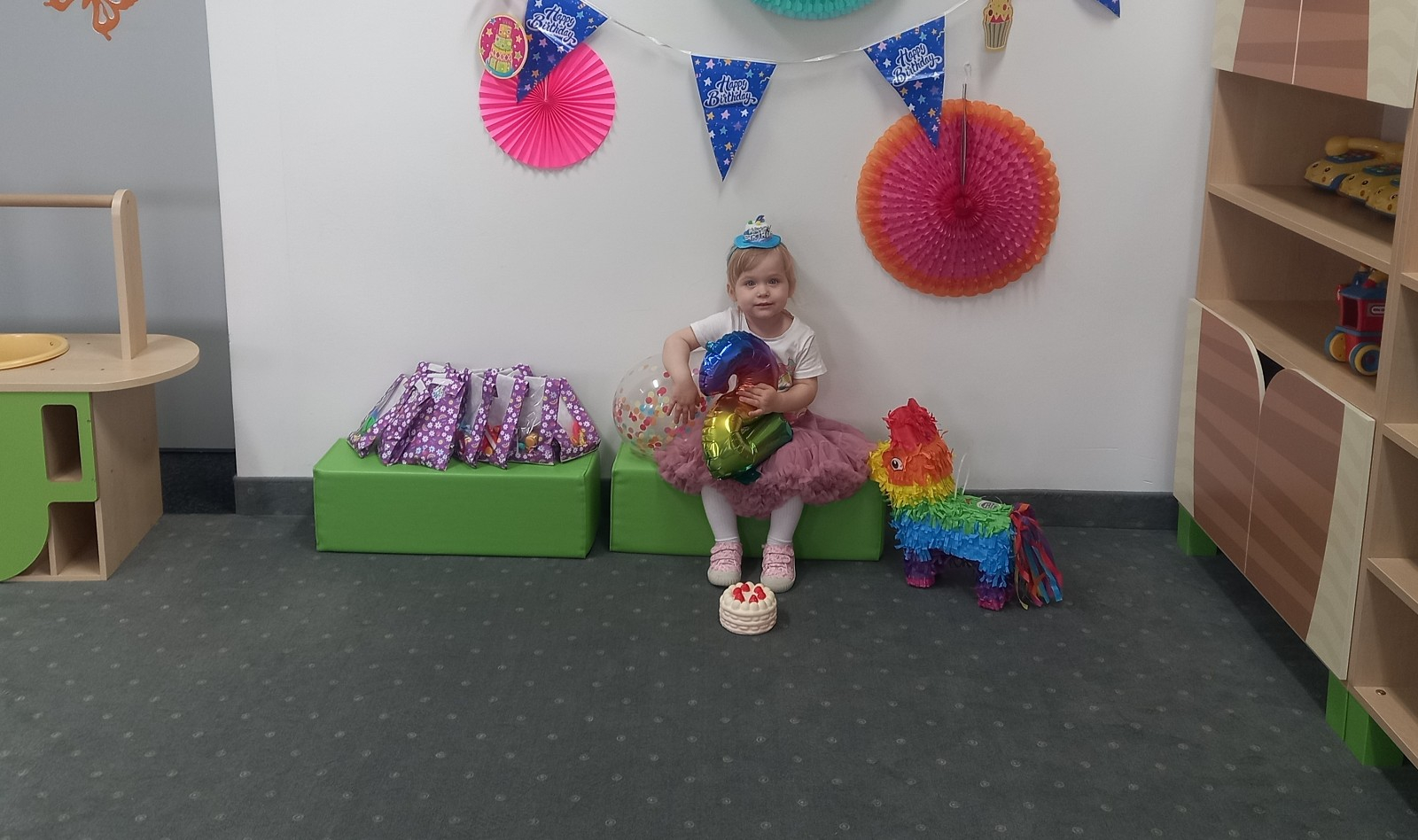 z tej  okazji  koleżanki, koledzy oraz ciocie zaśpiewali jej " Sto lat"  , a także złożyli serdeczne życzenia.Nastepnie  "Biedroneczki" doskonale się bawiły podczas urodzinowej zabawy.🥳🎈🎉