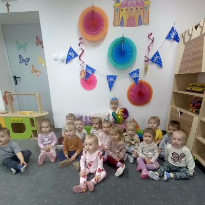 Zdjęcie przedstawia zabawę urodzinową na grupie