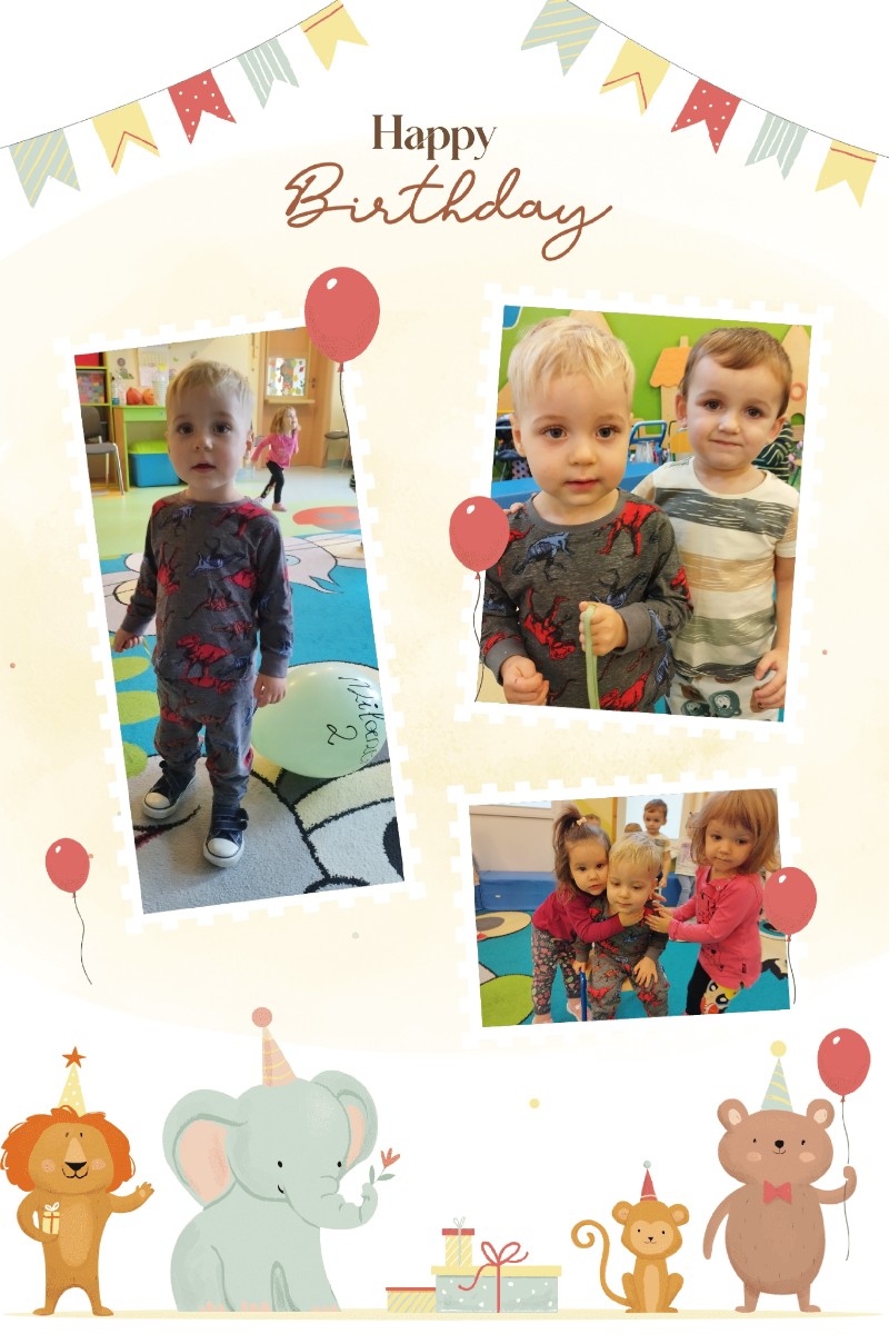 W grupie Muchomorki swoje 2 urodziny obchodził Milanek. Tradycyjne całą grupą odśpiewaliśmy głośne sto lat oraz złożyliśmy Solenizantowi serdeczne życzenia. Milanek w podziękowaniu przyniósł dla wszystkich dzieci słodki poczęstunek.