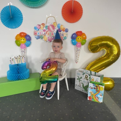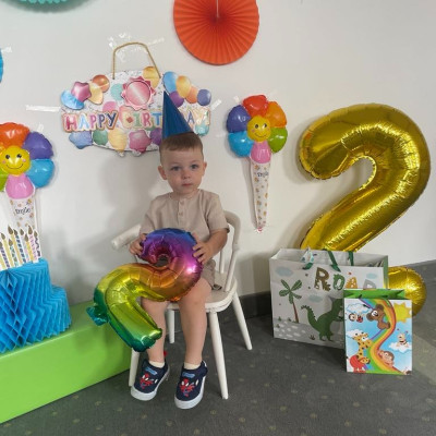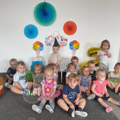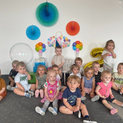 Zdjęcie przedstawia dzieci podczas zabawy urodzinowej