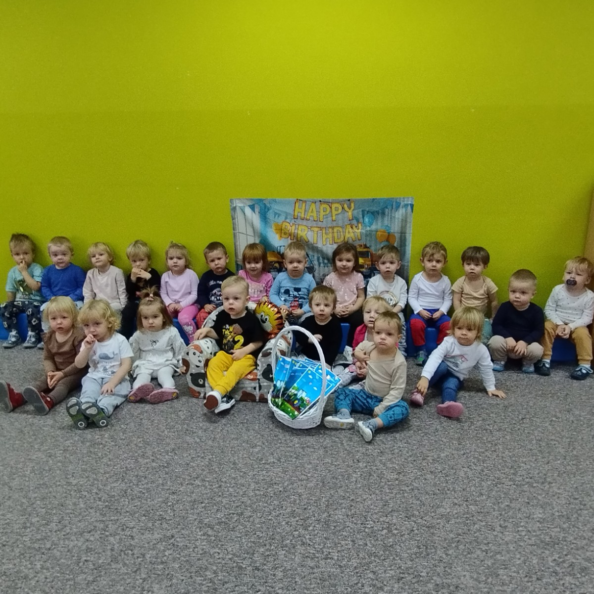 Zdjęcie przedstawia dzieci podczas urodzin w żłobku