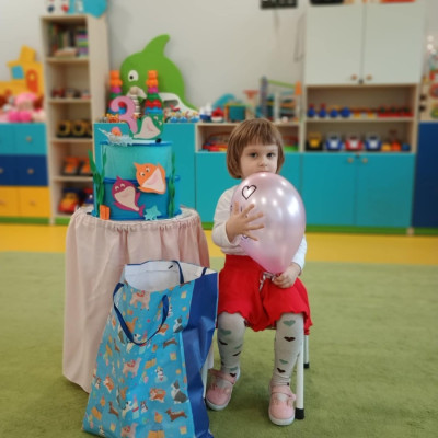 Zdjęcie przedstawia dzieci świętujące urodziny koleżanki z grupy