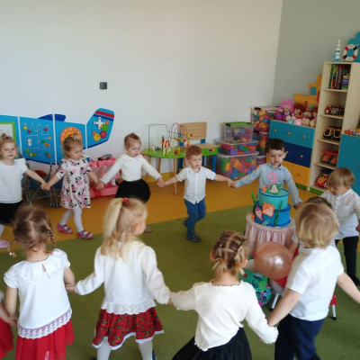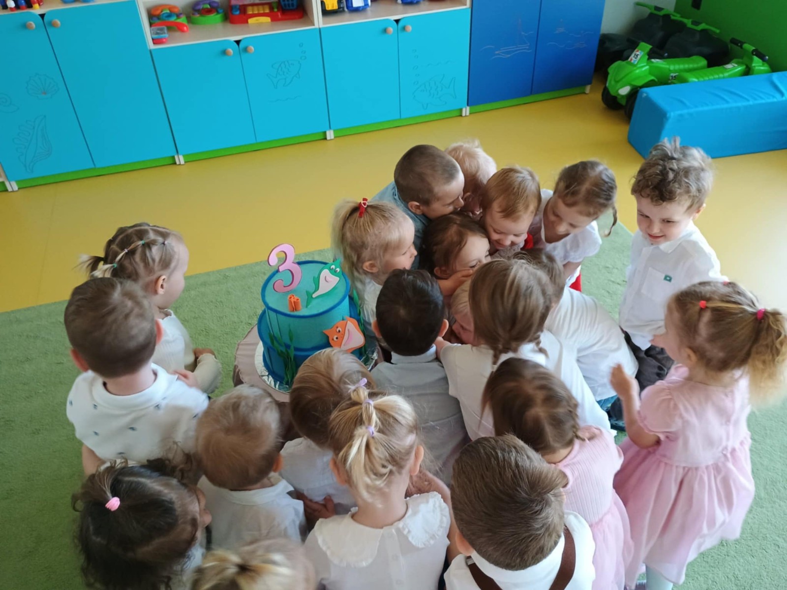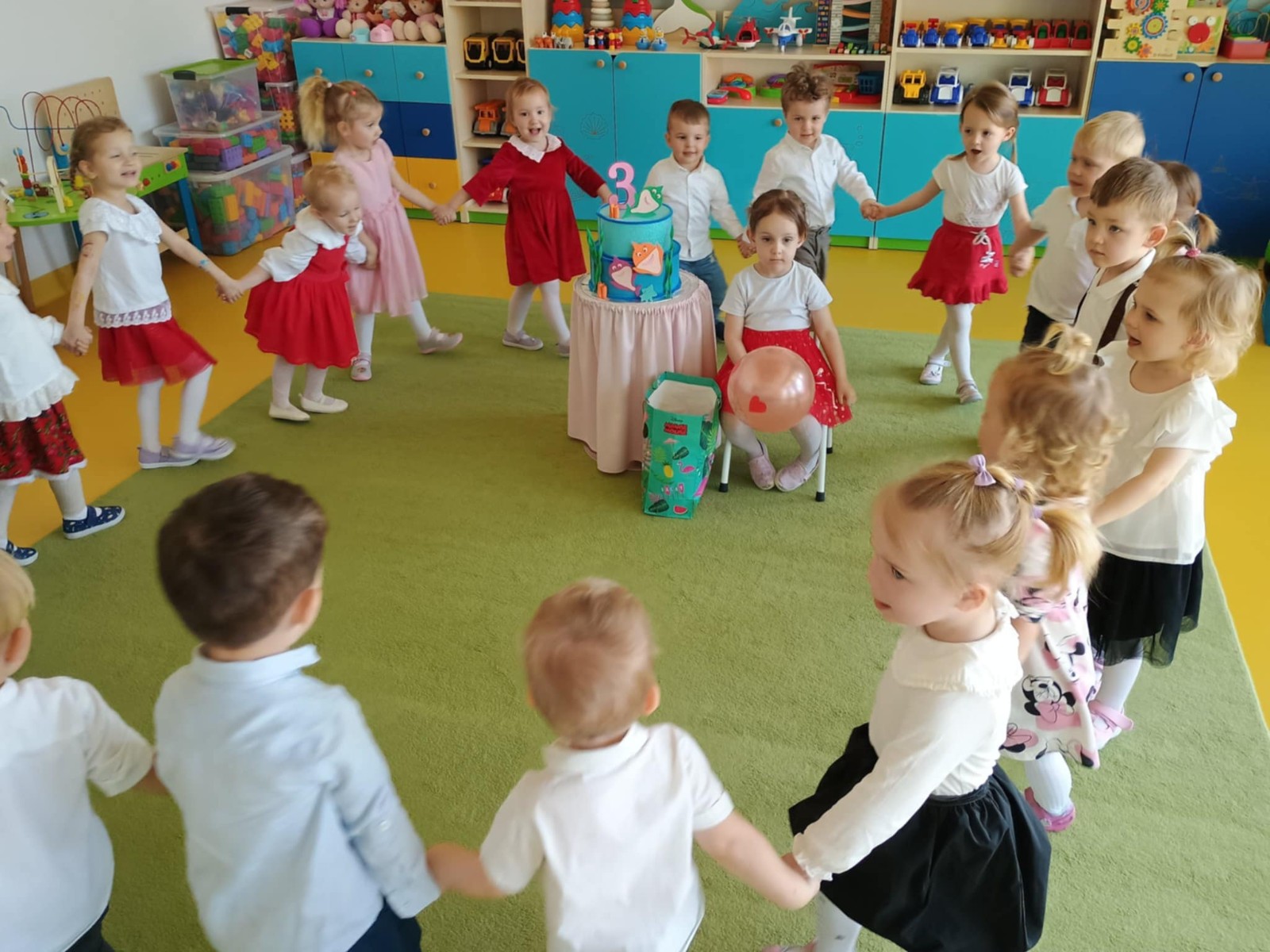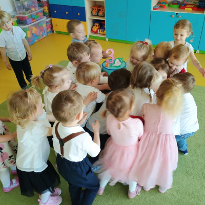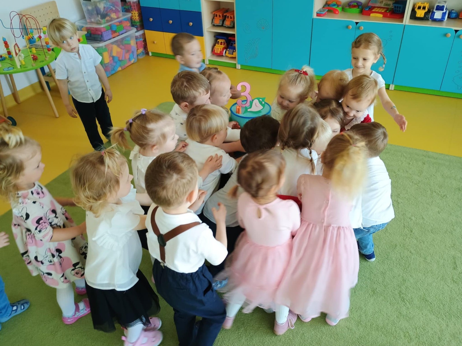 Zdjęcie przedstawia dzieci świętujące urodziny.