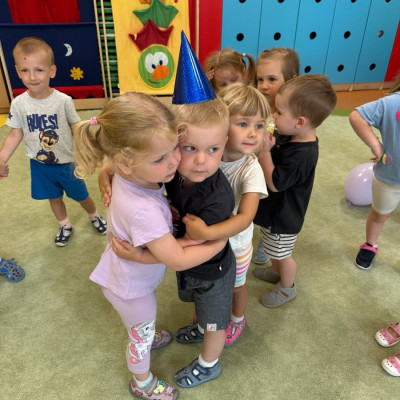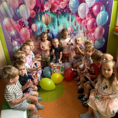 Zdjęcia przedstawiają dzieci podczas zabawy urodzinowej