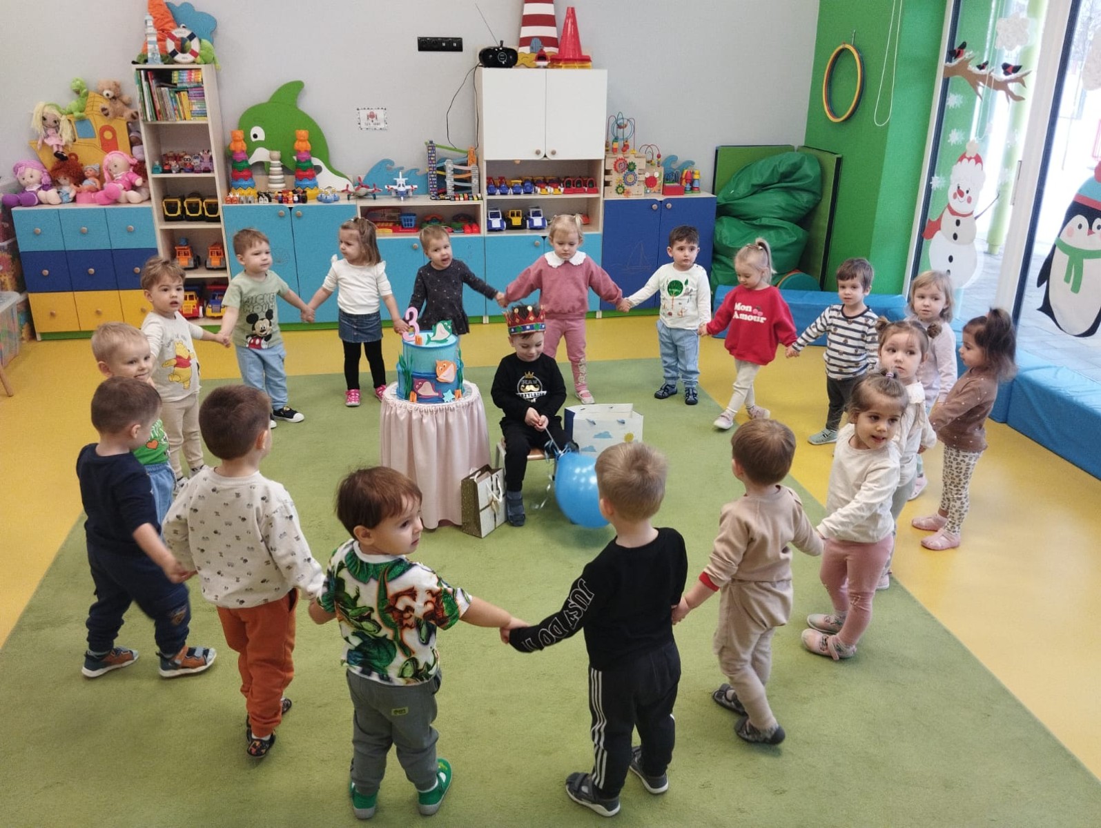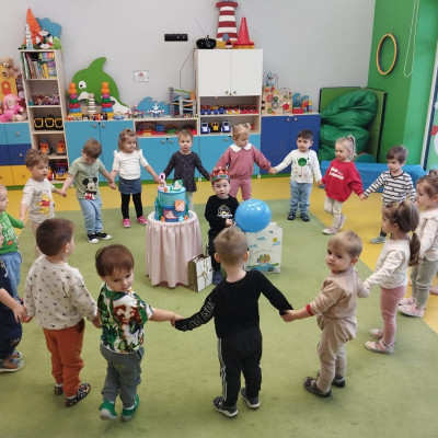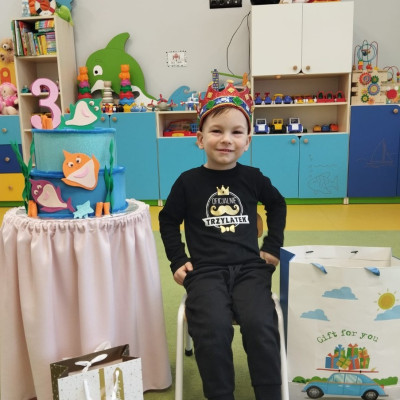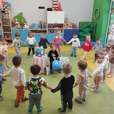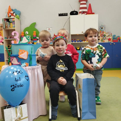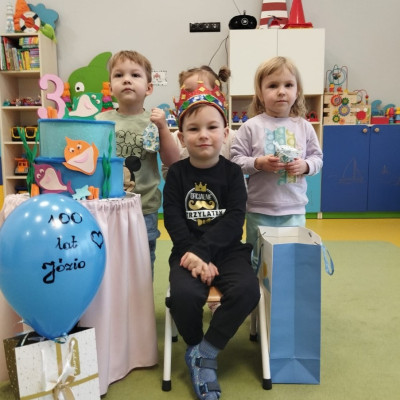 Zdjęcie przedstawia dzieci podczas urodzin kolegi