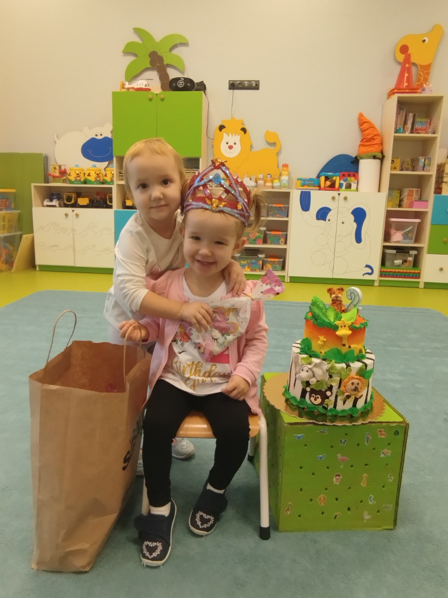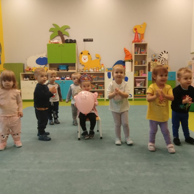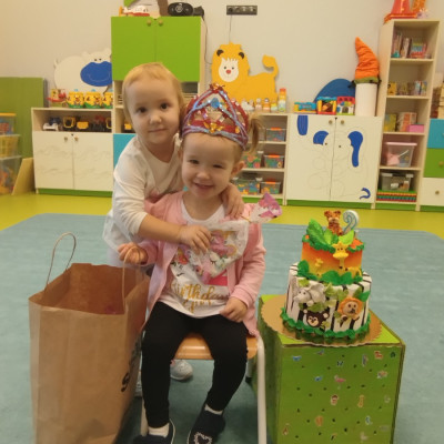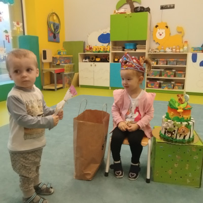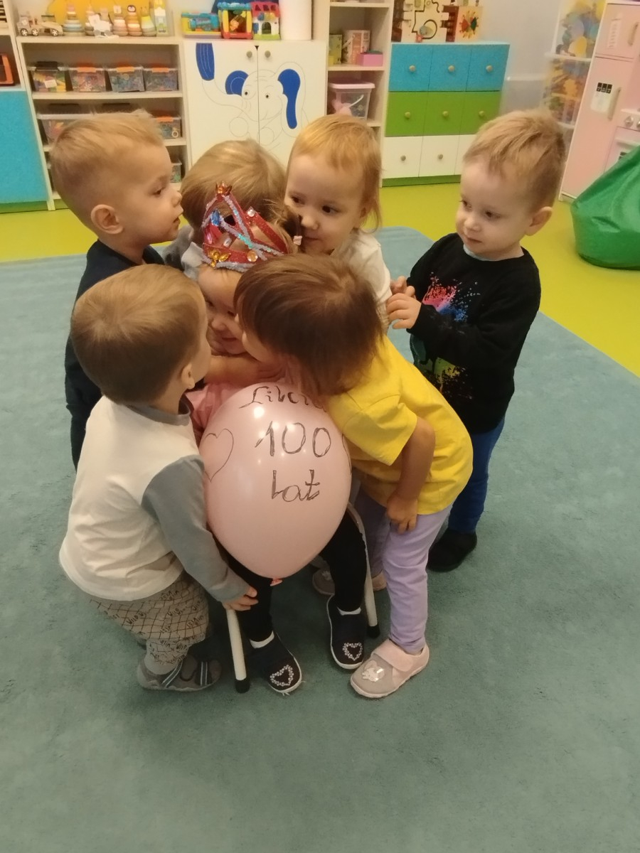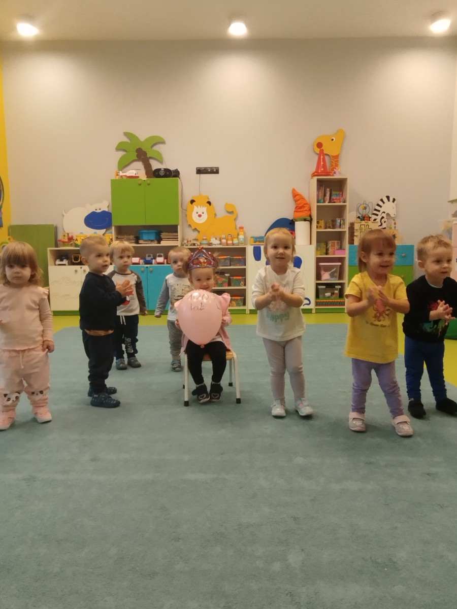 Zdjęcie przedstawia dzieci świętujące urodziny koleżanki