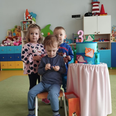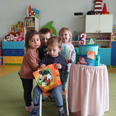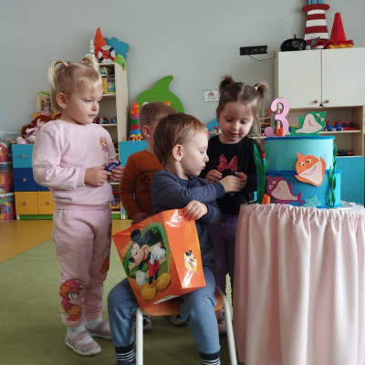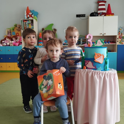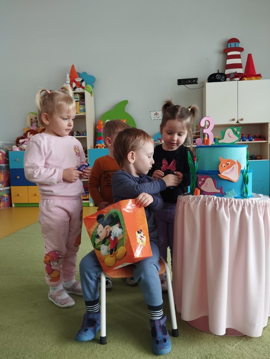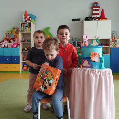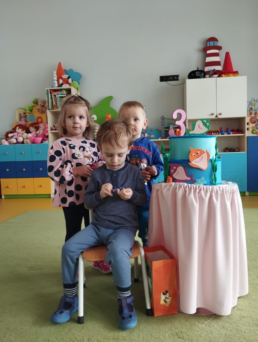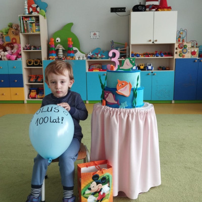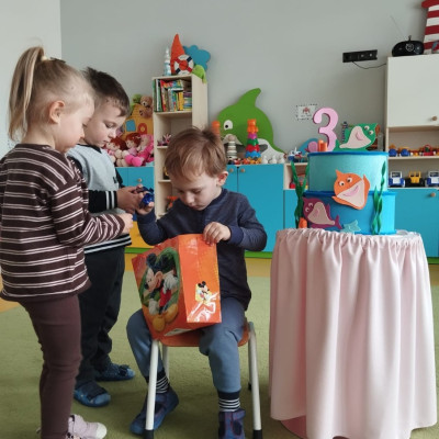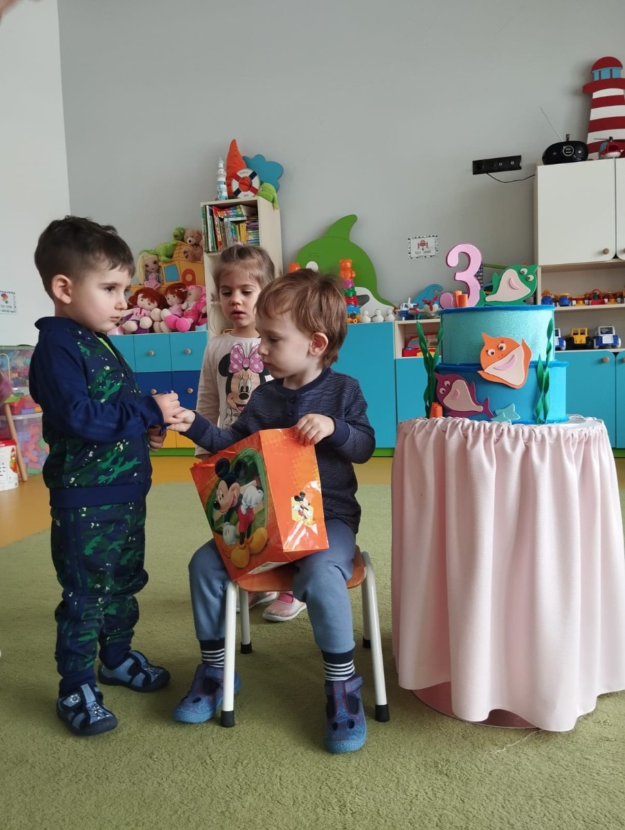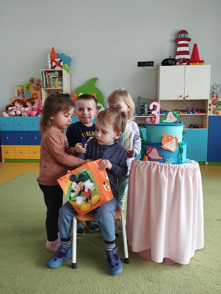 Zdjęcie przedstawia dzieci podczas zabawy urodzinowej kolegi