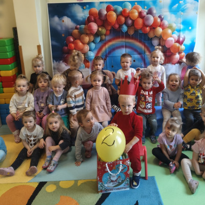 Dzisiaj obchodziliśmy drugie urodziny Tymoteusza. Koleżanki i koledzy oraz Ciocie żłobkowe składają Ci najlepsze życzenia urodzinowe, samych radości, góry słodkości oraz uśmiechniętej minki.