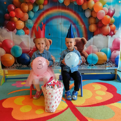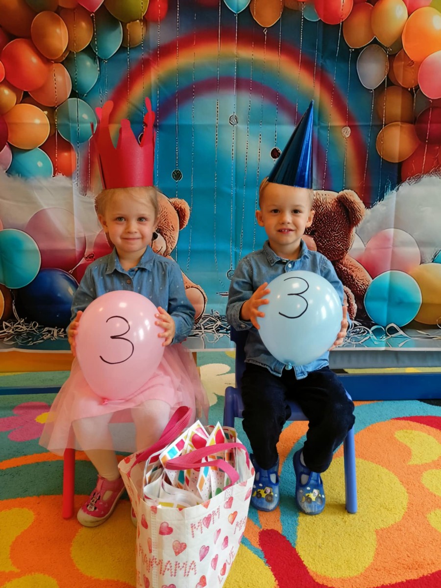 Zdjęcie przedstawia dzieci świętujące urodziny