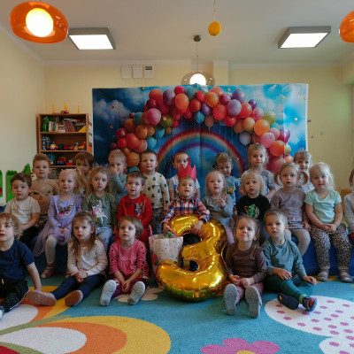 Grupa pszczółki. Urodziny Szymonka! W pierwszym wagonie olbrzymie słonie. Dalej żyrafy....lisy..... niedźwiedzie...... Na samym końcu pyszny tort jedzie.... Zające z miną uśmiechnięta wołają "Dziś jest Twoje święto".