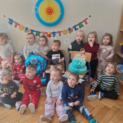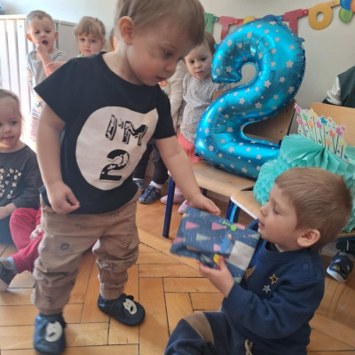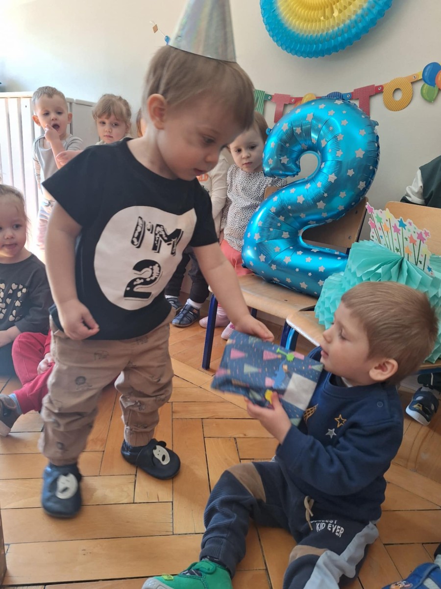 Zdjęcie przedstawia dzieci świętujące urodziny kolegi