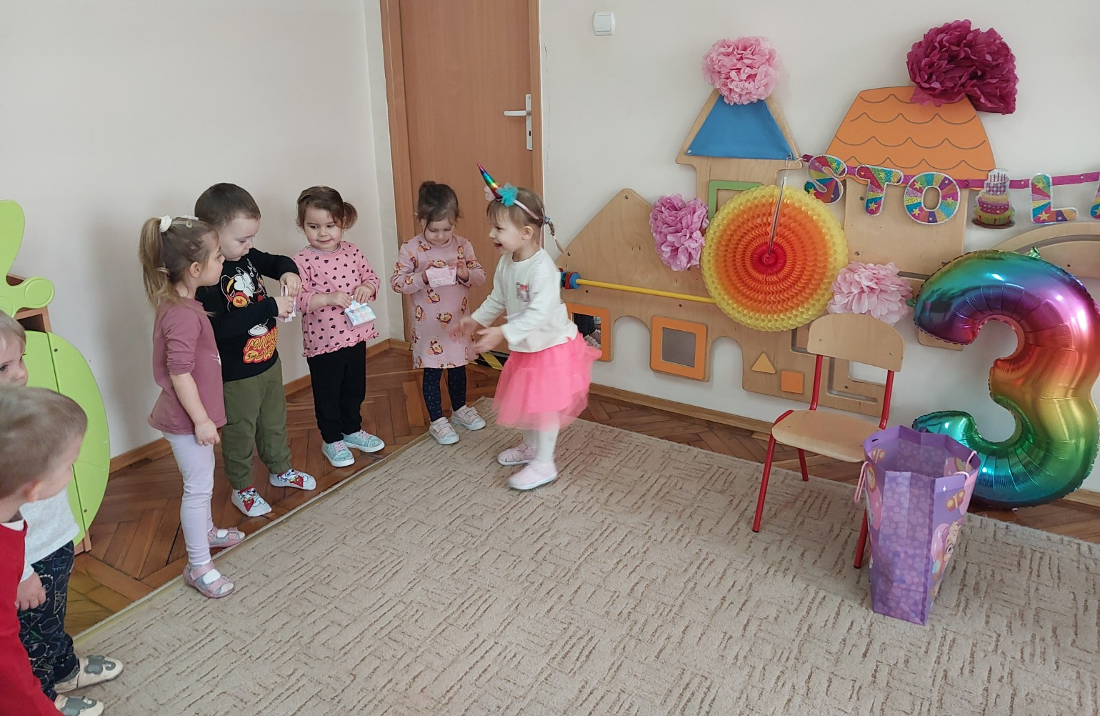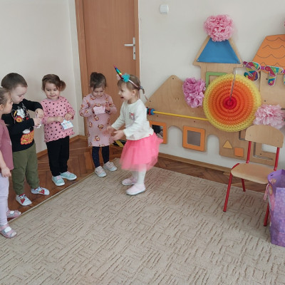 Zdjęcie przedstawia dzieci świętujące urodziny