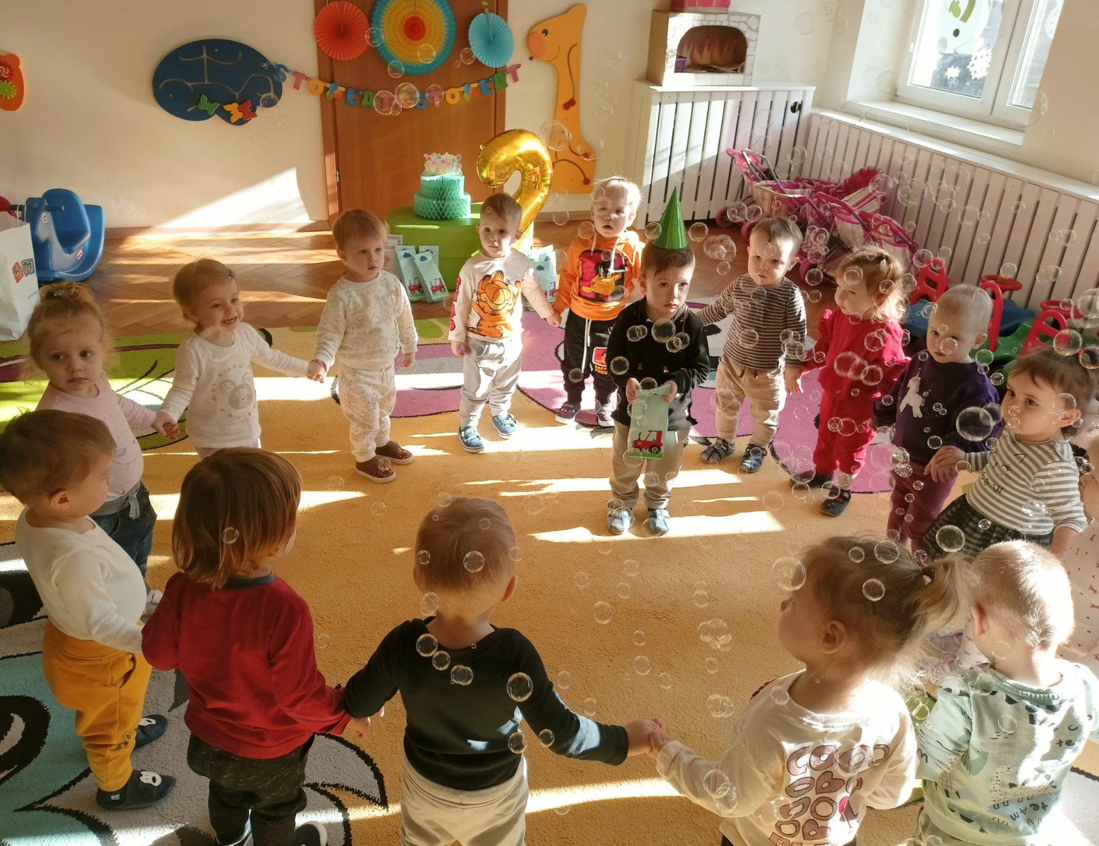 Zdjęcie przedstawia dzieci świętujące urodziny kolegi