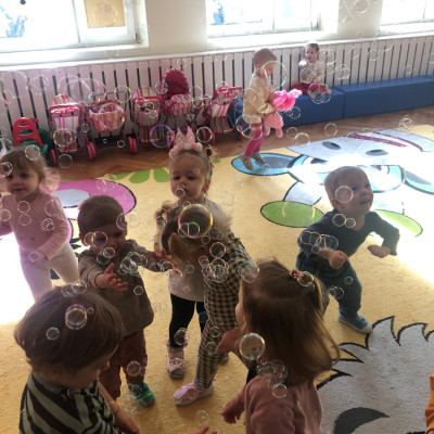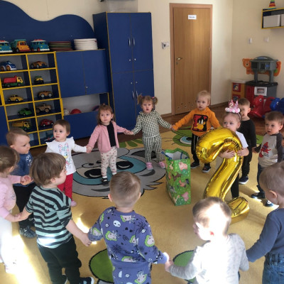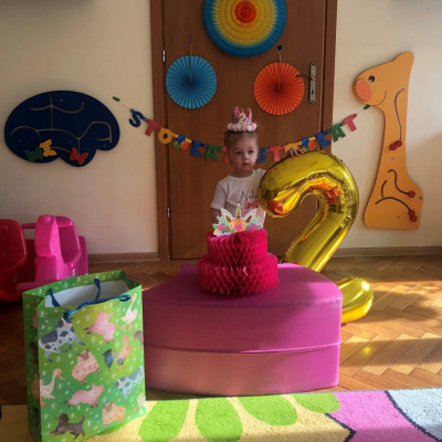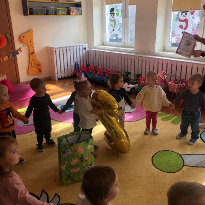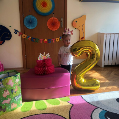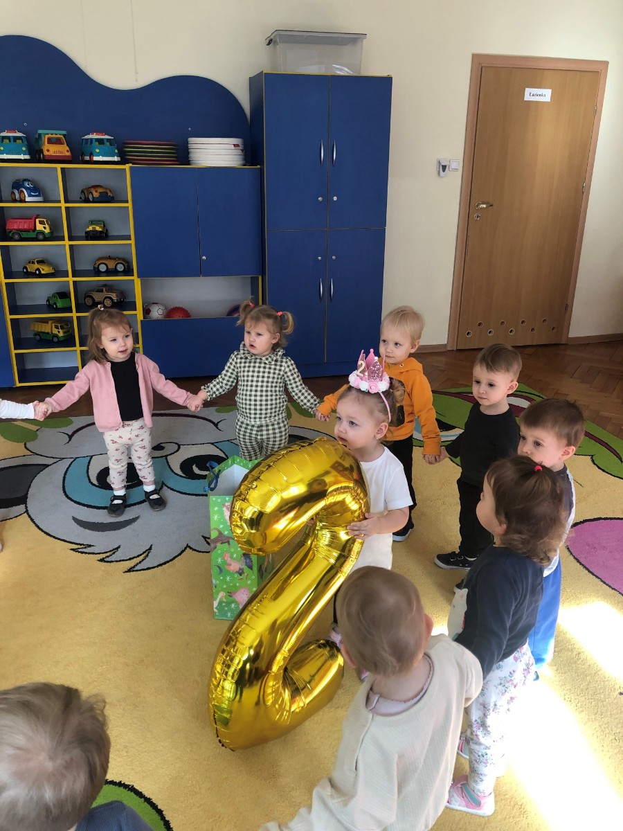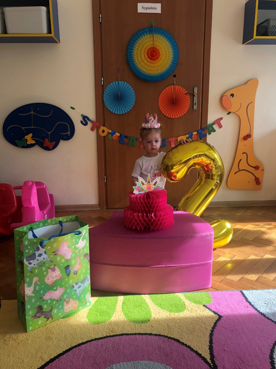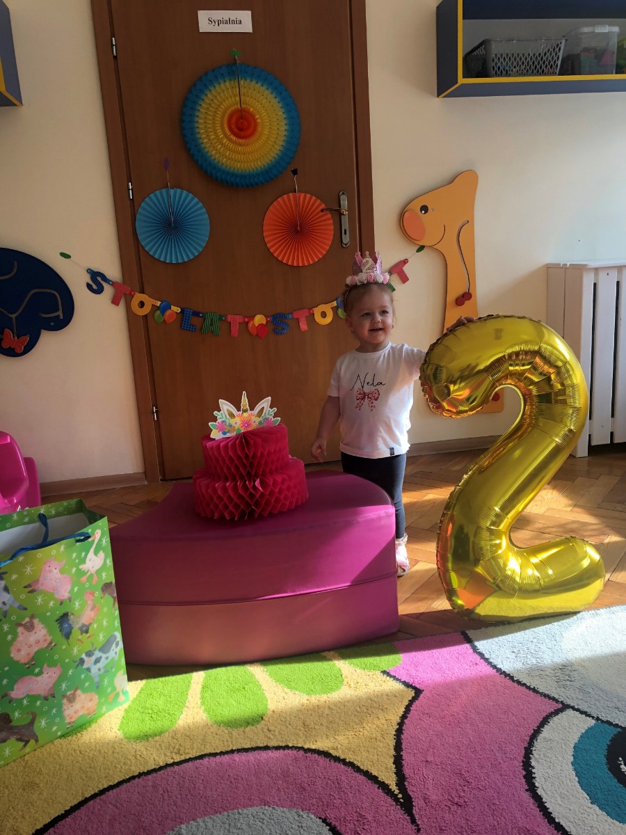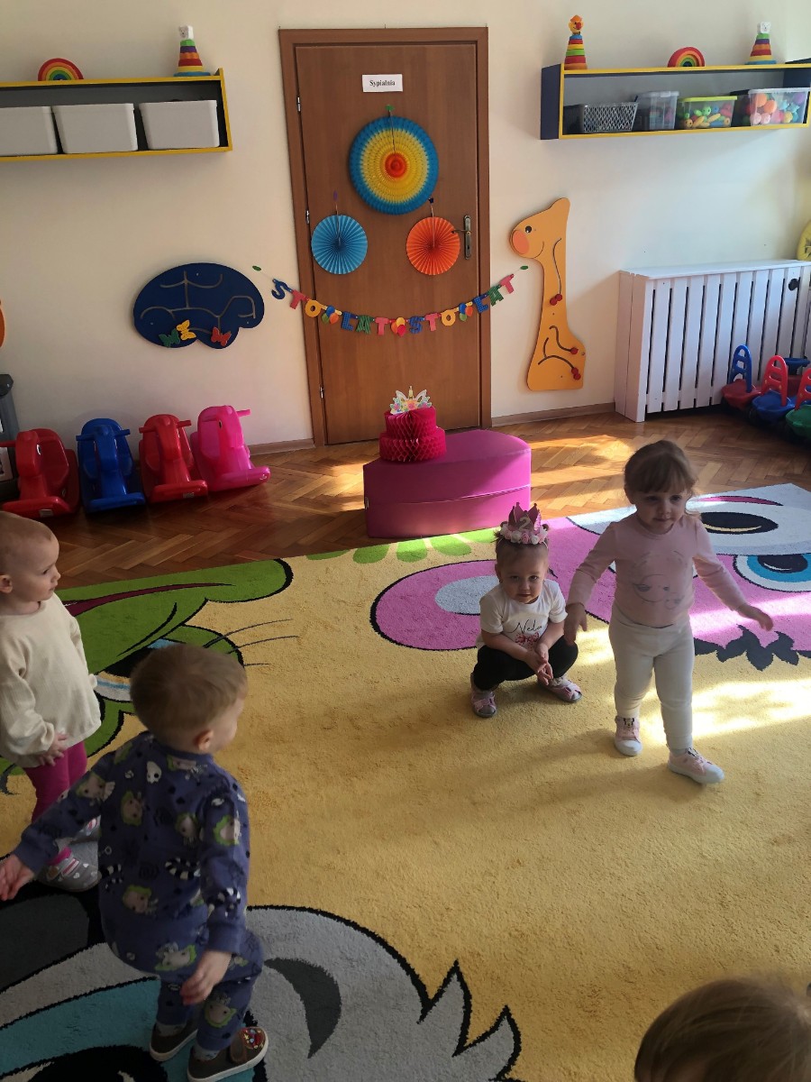 Zdjęcia przedstawiają dzieci podczas świętowania urodzin swojej koleżanki