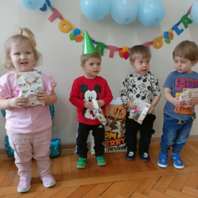 Zdjęcia przedstawiają dzieci świętujące urodziny.