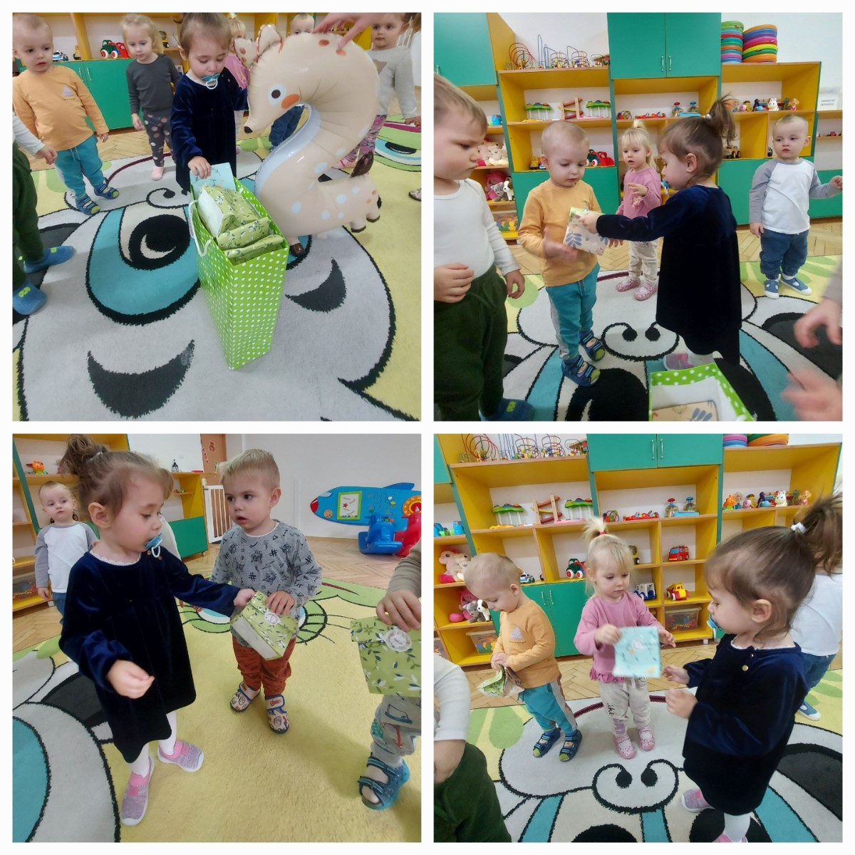 Zdjęcie przedstawia dzieci świętujące urodziny na grupie