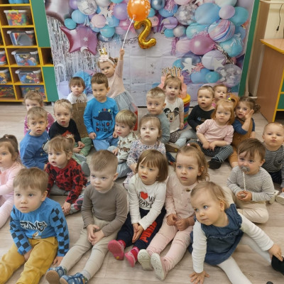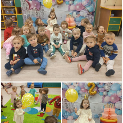Zdjęcie przedstawia dzieci świętujące urodziny.